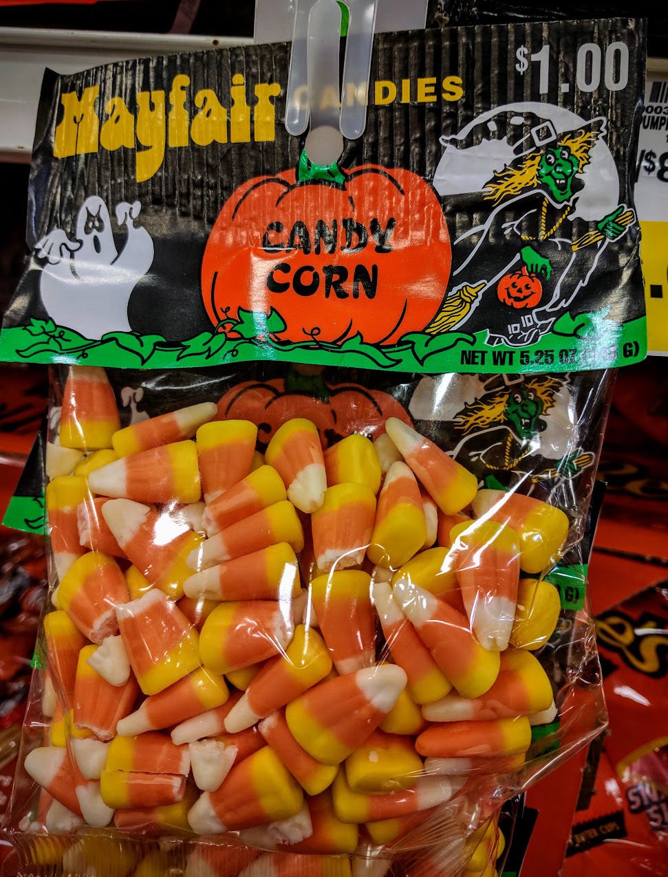 While I prefer the big name brands, keep your eyes open this time of year for smaller brands. Candy corn is an affordable treat, so you can often find it in the discount candy section. You won’t get a superior tasting product, but they will frequently have fascinating or even retro-looking packaging. A few years ago, I picked up this package from Mayfair. Just look at this design.