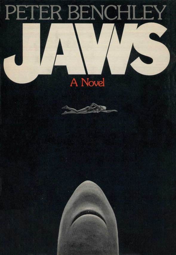 When I was a kid, I remember rummaging around in the basement of our home and finding a dog-eared Bantam paperback copy of Jaws. I had not yet seen the movie, but I was curious and the cover was terrifyingly evocative. So I snuck it upstairs to read late at night when everyone was asleep.