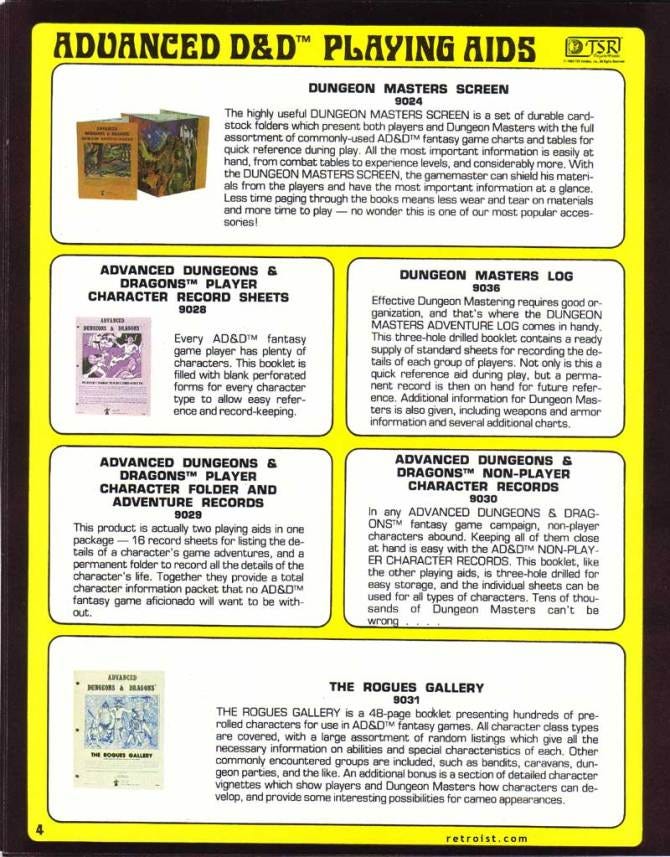 Always had a soft spot for these screens, even though I switched to later versions. I eventually bought most of these on clearance over the years, but for the most part my character sheets and logs were handmade. The Rogues Gallery is underrated as an aid and helped me develop my own set of pre-canned randoms.