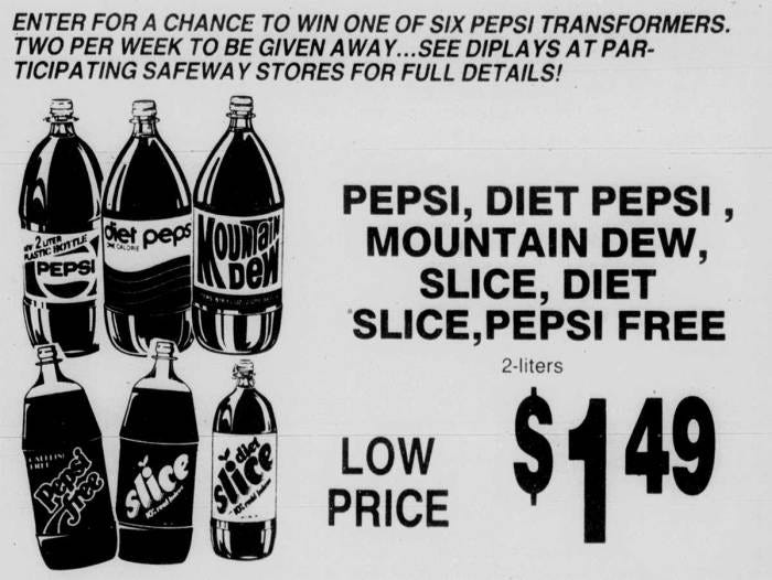 While celebrities featured heavily in Pepsi’s advertising, it was not exclusively celebrity-focused. In 1984, The Transformers television series was a runaway success and the toyline was sweeping the United States.