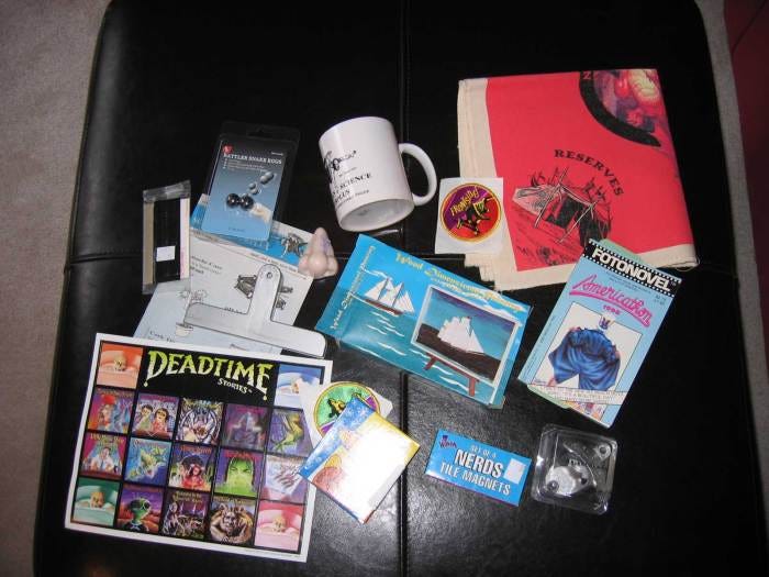 Here is a photo of some of my haul. I tried to not include dupes. I did buy a bunch of those Nerd Magnets, and a stack of those Deadtime Stories stickers.