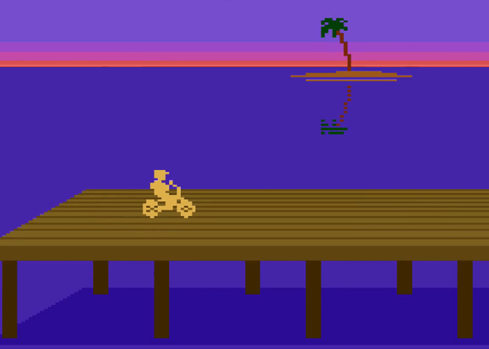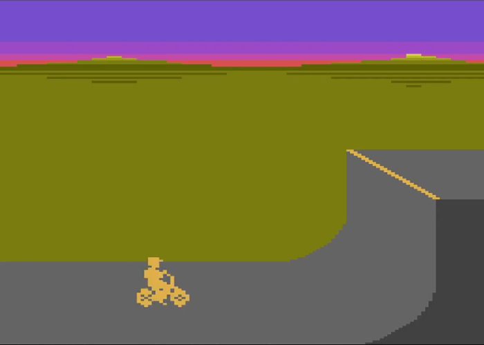 Firing up the game you will notice two things. The game has wonderful graphics and really nice music. The audio and graphical work on this game is top notch for the Atari 2600. Some of the graphics in the Ramp Jump portion of the game are some of my favorite for the system.