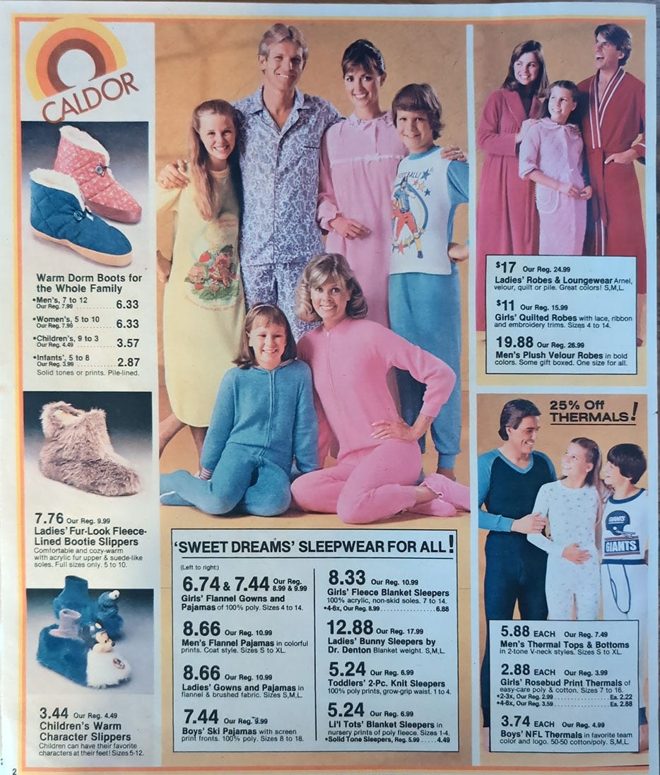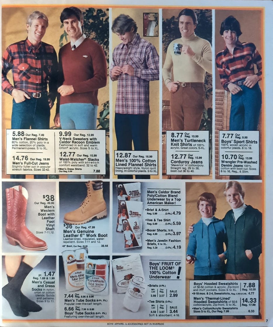 Two pages of clothing here. The allure of velour! These sweaters are nice, but those winter jackets were very memorable. I remember seeing them on people for many years. I always wondered why I always had Lee jeans; I think it’s because this was a big thing at Caldor.