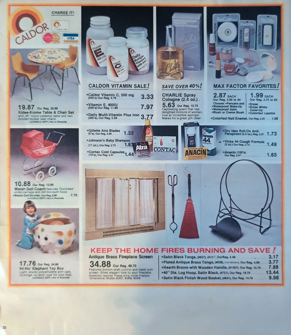 Caldor, a discount department store chain, was founded in 1951 by husband-and-wife Carl and Dorothy Bennett. I was too young to understand the hierarchy of discount department stores, but my mom always put Caldor towards the top of the list. I think it was in a way that some people seemed to look at Target vs. Walmart nowadays. Because my mom liked it, we always had circulars floating around the house, and looking at them really brings back lots of memories.