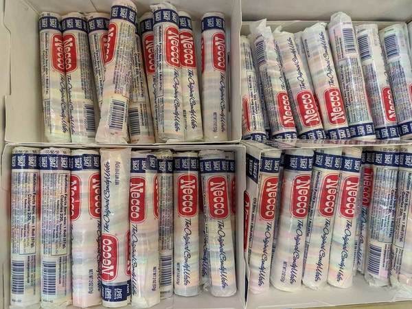 In 1901, they started to be manufactured by the New England Confectionery Company (Necco) and by 1912 they were being advertised as Necco Wafers.