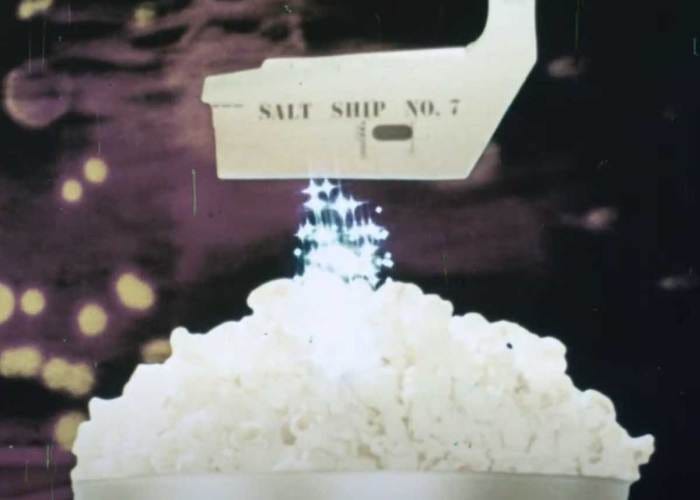 After the popcorn is popped, it is properly salted by the brave pilot of Salt Ship No. 7. I am not sure why they chose that name, but I love the specificity. Its the small details that make productions like this so memorable.