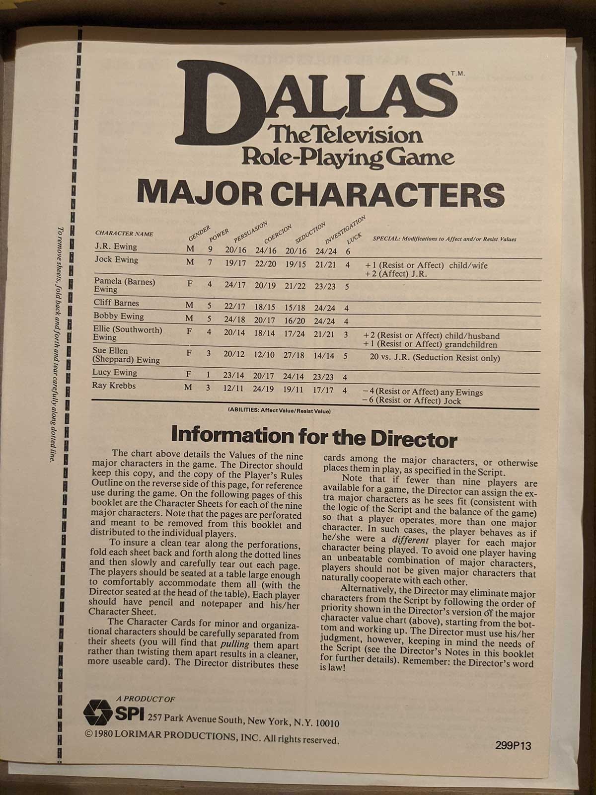 Looking back, it is remarkable that this game ever got made. It is easy to see why people were high on Dallas. It was a TV juggernaut. What is more difficult to see how an RPG could get made for it. All I can say is that in the early days of D&D and RPGs, so much seemed possible.