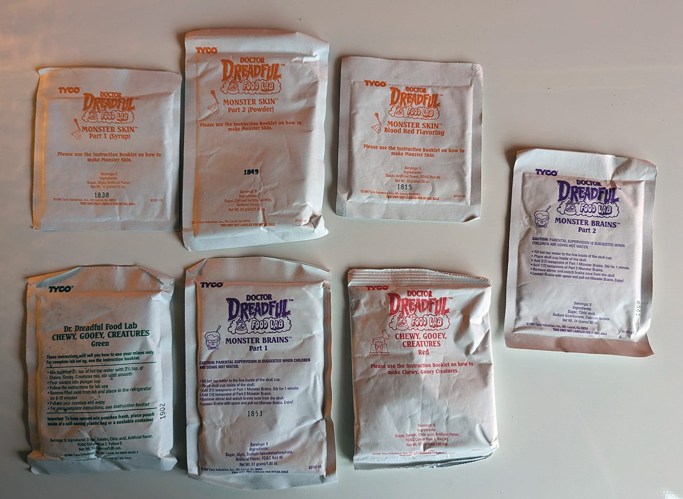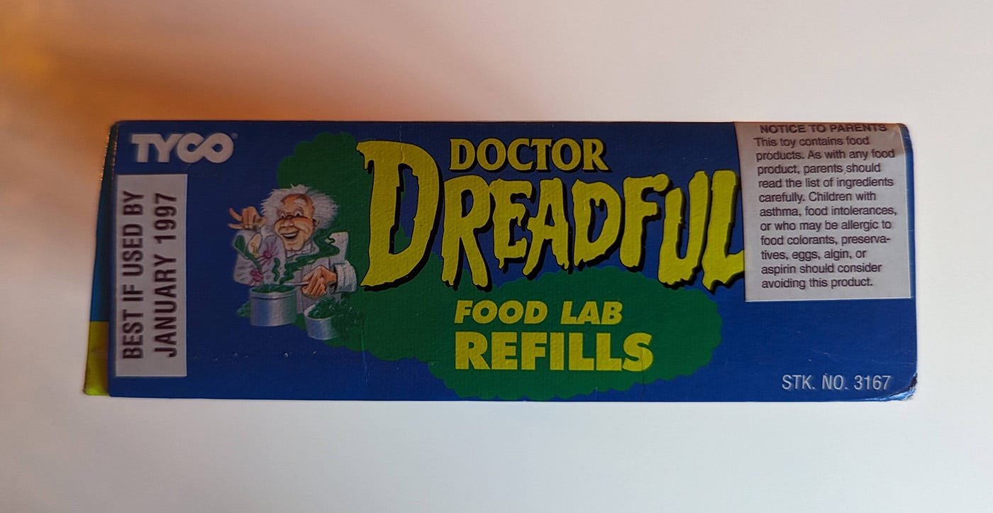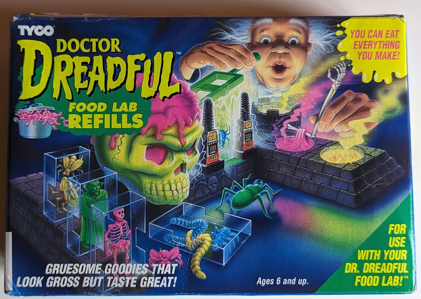 The Doctor Dreadful product line had a good run. Sadly, like many food-based toys that required refills, once they stop making the product, you don't get to play with it much anymore. Right now, lots of New Old Stock food replacement kits are available online on eBay. So if you have an original lab and want to do some experiments, you have some options. Although, I wouldn't try eating this stuff; that is something only the maddest of mad scientists would do.