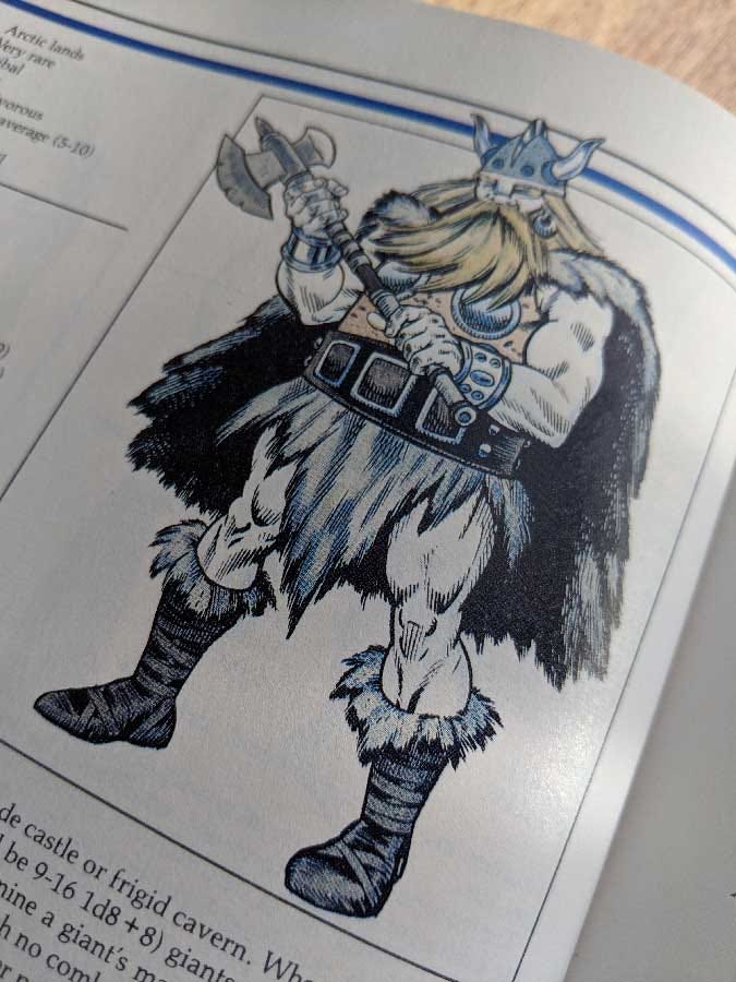 Stats for the Frost Giant line up nicely with its appearance in the first edition Monster Manual. In second edition, the Frost Giants get a bit of a makeover, becoming both taller and receiving for Hit Dice. The art by Jeff Butler might be different, but the stoutness remains intact. This is not a lanky giant, this is a giant that built like a 21 foot tall fire plug.