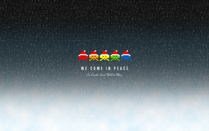 Enjoy this Christmas Edition of the “We Come in Peace” Desktop Wallpaper