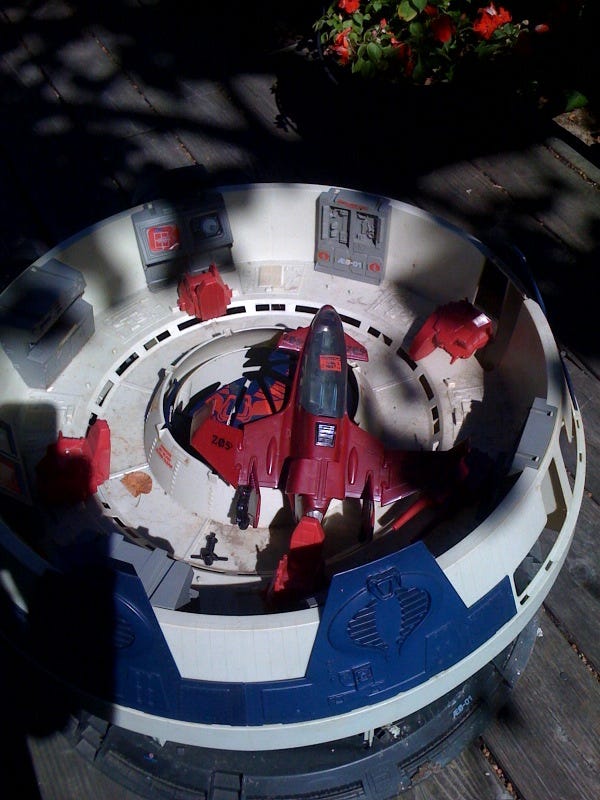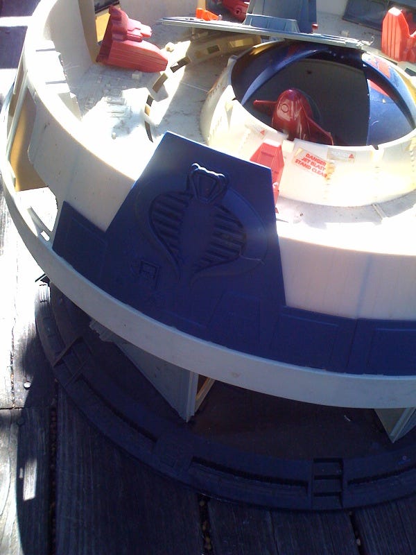 She might be in rough shape and certainly needs some cleaning, but this past week I finally got my hands on a Cobra Terror Dome. If you bring the corn chips and grape soda, you can come over and play with it once it’s all fixed up. But I call dibs on the Firebat…