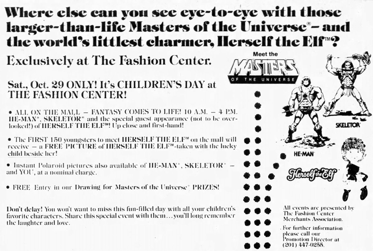 In early 1983, just after the Christmas that brought more figures to that first release, I started to see mentions of live appearances by He-Man and the rest of the group at toy stores and malls in my area. These live appearances were becoming more common as toy companies realized the value of face-to-face marketing. Similar events for Transformers and G.I. Joe would also draw large crowds in the mid-80s.