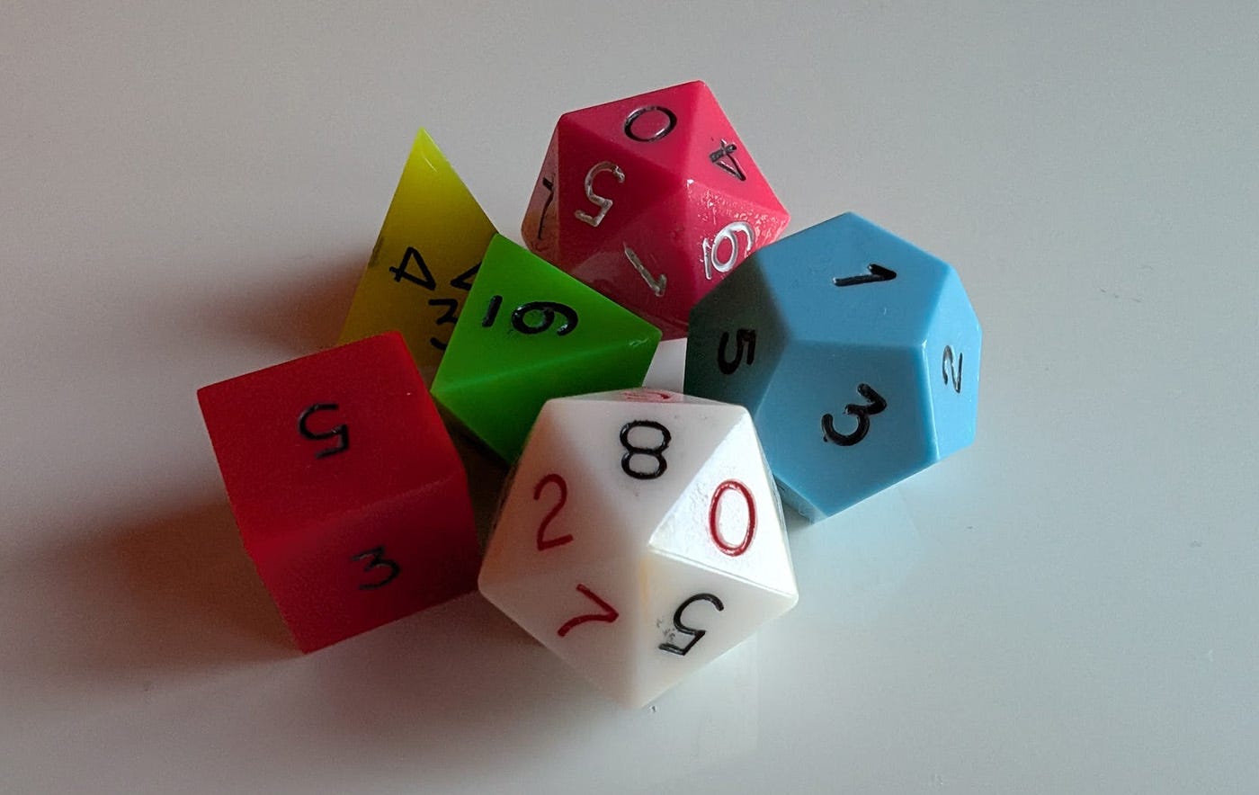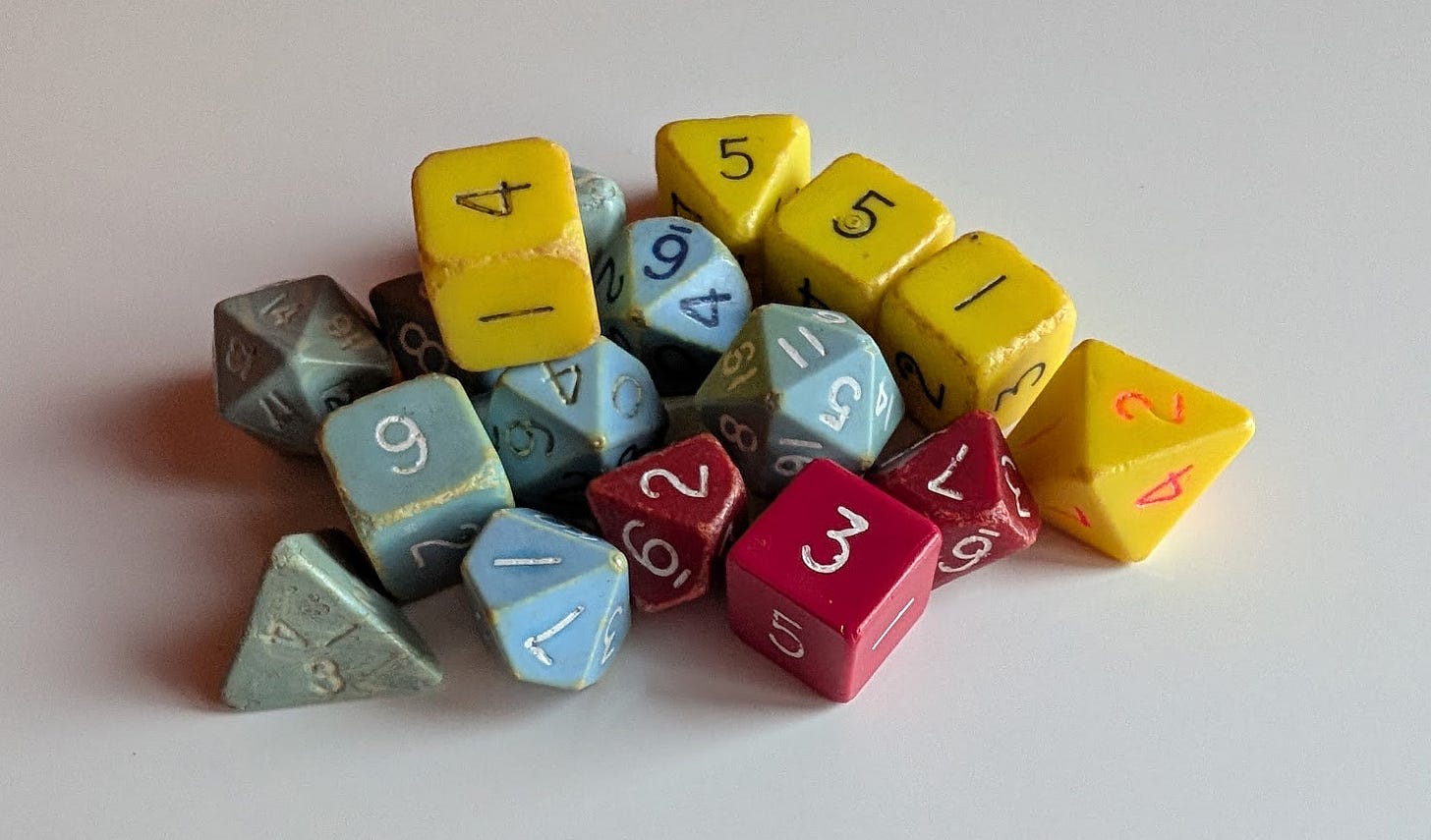 If you grew up playing Dungeons & Dragons or other role-playing games in the early days, you most likely have something in common with other early gamers: you “inked” your dice. I don’t recall calling it inking back then; it didn’t even occur to me because my dice never had ink applied to them. Instead, I would grab a crayon, fill in the numbers, and then wipe off the excess. I was rough on my early dice, plus I had a player who liked to take a pencil to the dice and scrape out the wax, thinking it was funny. As a result, I had to re-crayon them every few months.