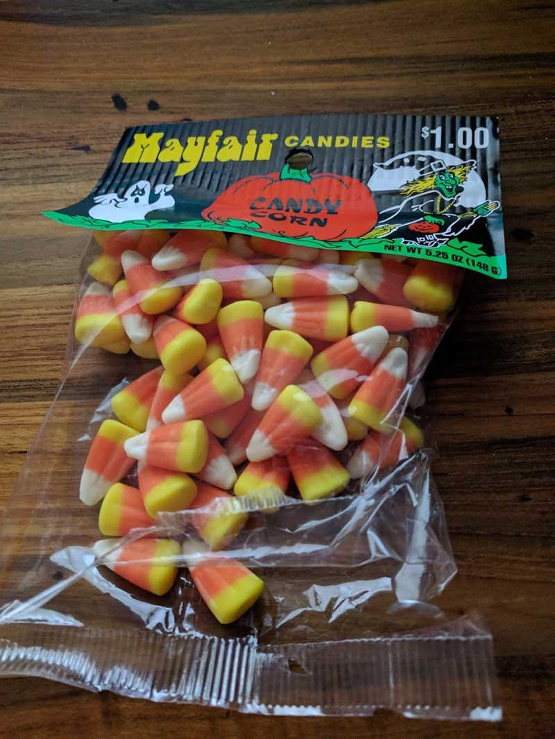 Halloween shopping keeps starting earlier each year. Despite my love for the holiday, I do try to limit my browsing until the month of October. I violated that rule (again) today at the supermarket today after spotting the retro packaging of Mayfair Candy Corn.