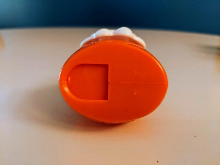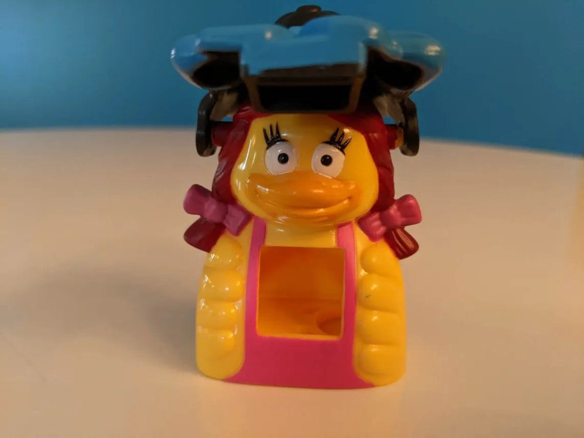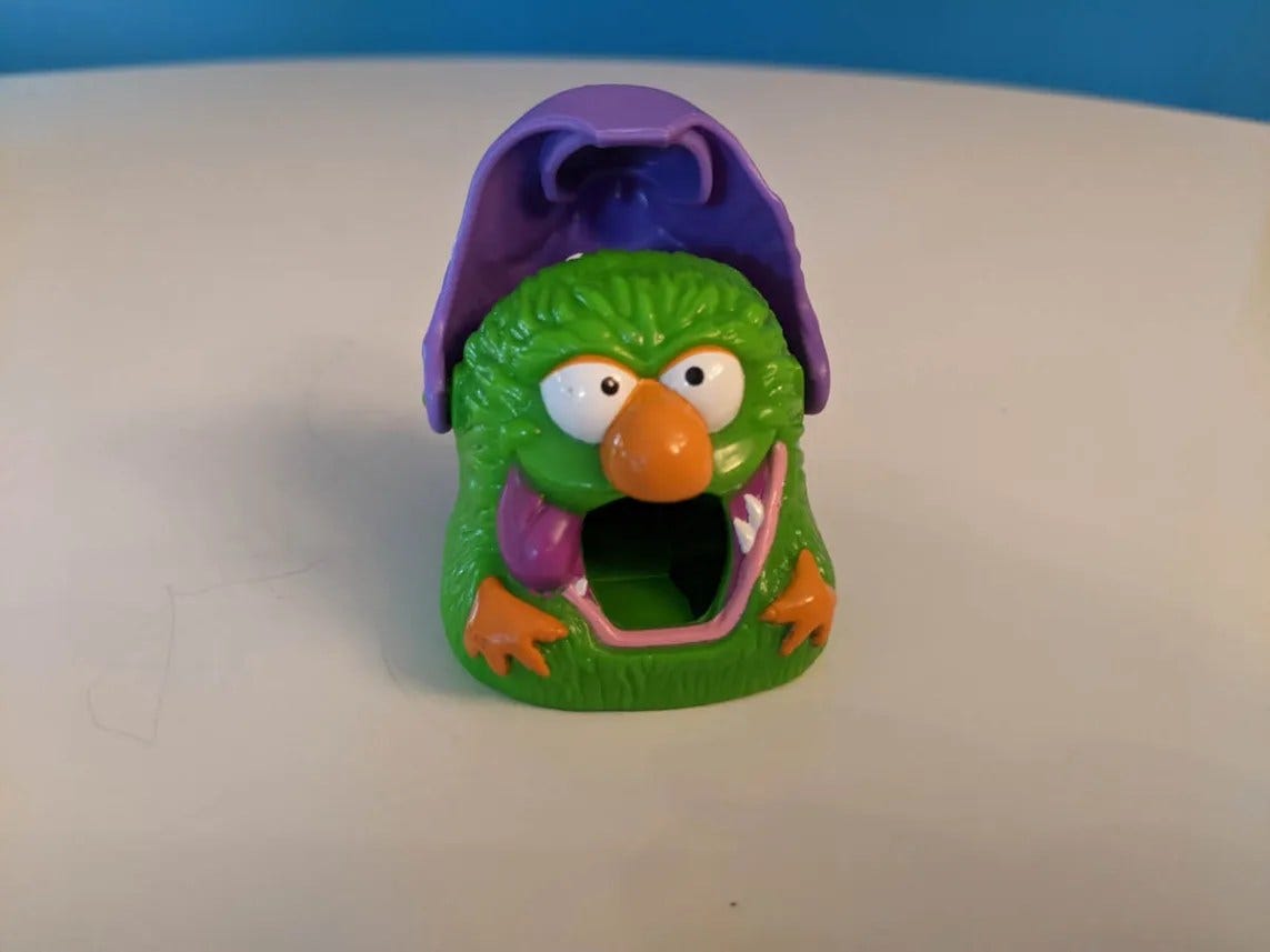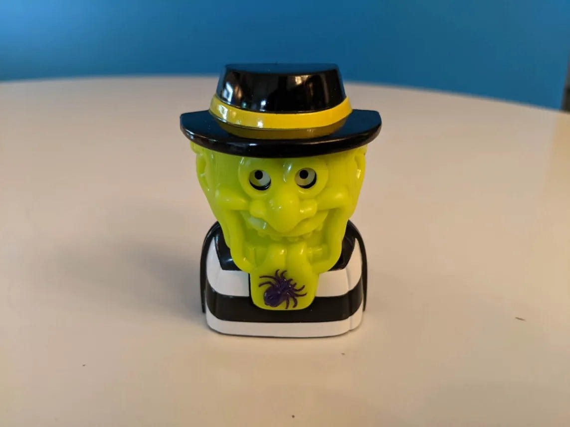 Released in 1998, each Happy Meal purchase came with one of six candy holding toys and a small package of Halloween-colored Nerds candy. You inserted the nerds through a trapdoor in the bottom of the toy.