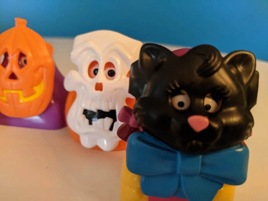 The Ronald and Pals Haunted Halloween Happy Meal Toys were only available for one year, but luckily they sold a lot of them. So if you are a fan of Halloween-related McDonald toys, they are pretty easy to find. They make a great addition to your Halloween decorations, and their removable masks make them difficult to put down. Fill them with candy, and you have yourself a winning seasonal display.