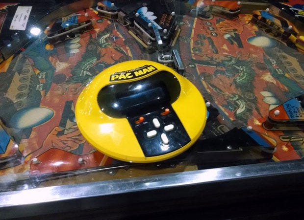 Blinddog was there, of course, and he had a great surprise for me. One of the vendors was selling a Tomytronic Pac-Man, which I had been looking for in good shape, and he picked it up for me. I have wanted this particular game since I was a kid and my cousin owned one (and after it made a powerful appearance in Magnum PI), but I was never able to find one in decent working order. After bringing it home and giving it a quick cleaning, I popped in some batteries and turned it on. The audio on this thing is loud enough to wake the dead and the screen is crystal clear and strong. It is a great-looking peach of a game that I will enjoy for years to come.