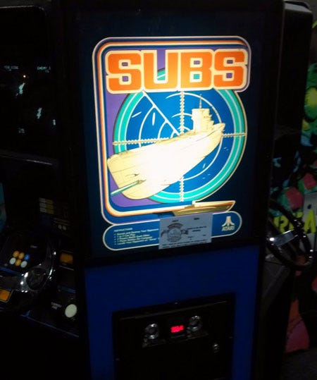 Luckily Tom was there and we settled upon a game that Blinddog had brought to the show, Subs. This game, which is a lot of fun, was right on the corner on the center aisle and I saw many people snapping photos of it throughout the show. Probably because it has a cool two-screen setup that screams 1970s video games and an interesting corner-friendly form factor.