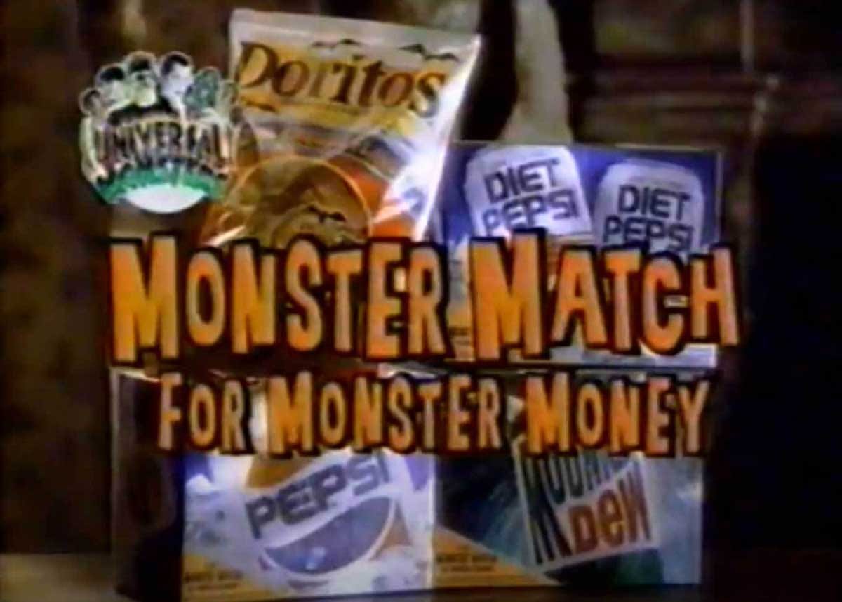 In 1991, I was very into eating Doritos. I had liked them for a while, but as the late Eighties rolled around, they suddenly moved to the top of my personal snack chip pyramid. Frito Lay managed to make eating Doritos a lot more interesting, especially around the Halloween season by introducing the Monster Match for Monster Money contest in association with Pepsi.