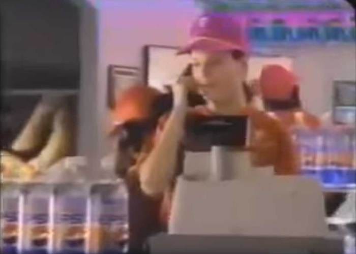 In this offer which ran in 1992/1993, we see Pizza Hut bragging on having Crystal Pepsi. A product, their pizza rival, Domino’s does not carry. The commercial is wonderfully optimistic, with pizza patrons calling to order pizza contingent on Pizza Hut or Domino’s having Crystal Pepsi to accompany it.