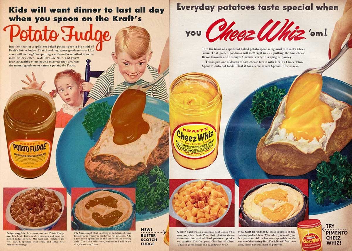 I almost hate to write this post, but the time has come. If you follow me on social media, you might notice that every once in a while I post an ad for Kraft Potato Fudge. It is one of my favorite ads to post and it also fake.
