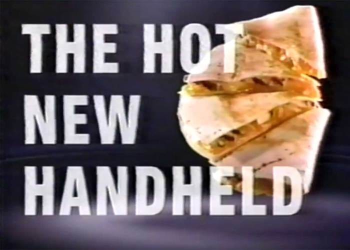 But wait! Here is a handheld you have never had before Jeff. It is Taco Bell’s new Chicken Quesadilla. Being a good CEO, he demands a demo. So the person I assume is the director of cheesy deliciousness steps up to the plate and grabs a handful and takes a bite. She then spends the better part of 5 seconds wordlessly appreciating this scrumptious new food, and everyone is very impressed.