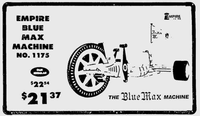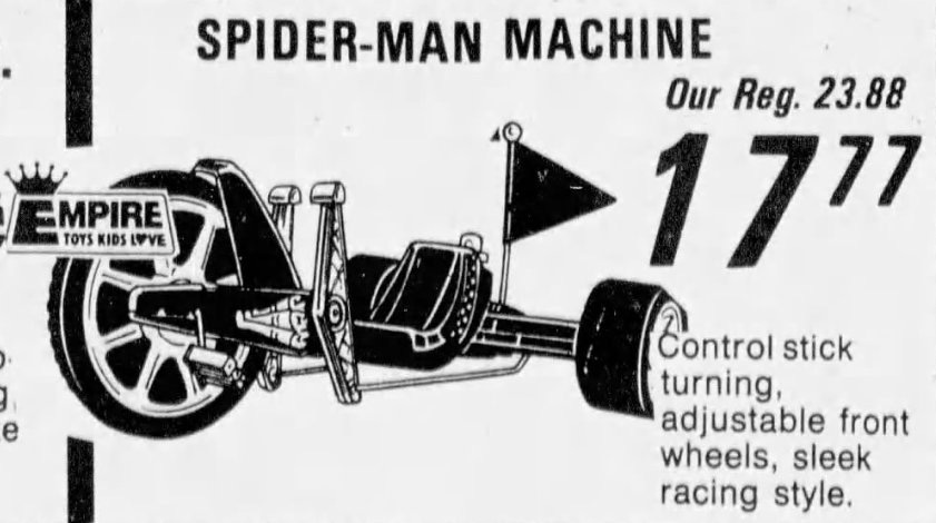 This set me looking for details about this remarkable toy and I was happy I did. Not only did I find a company that made a variant of the Green Machine called the Blue Machine Max, I was also able to find images from the Sears Catalog of the Bat Machine.