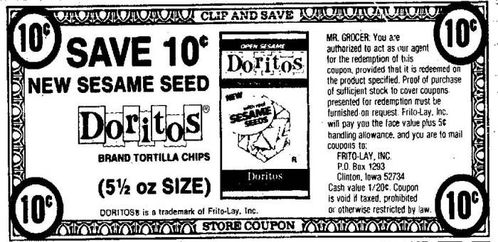 They also made a push in newspapers and retail chains. Adding mentions of the new product in supermarket print advertising along with 10 cent coupons. This was a pretty good deal since a 5.5-ounce bag generally retailed for about 40 or 50 cents. One store even threw in a packet of seeds with every purchase. That is a great deal.
