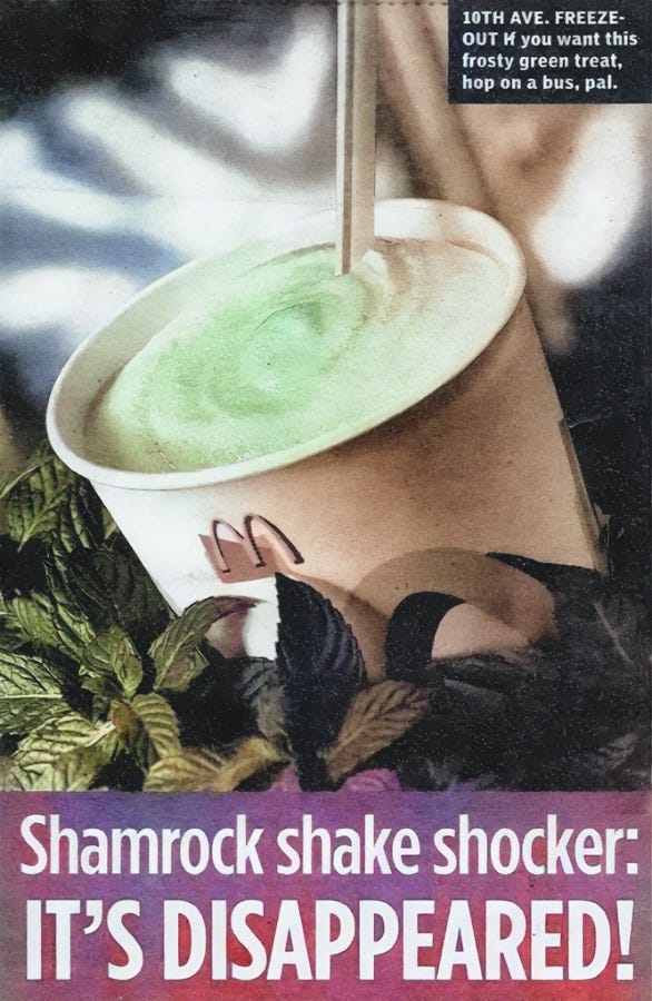 Whenever I asked someone at a McDonald’s for a shake, they just sort of shrugged me off. They had no idea why they weren’t serving the shake and they didn’t seem to care. I would find out the answer a day later when talking to my sister who had read an article about the lack of Shamrock Shakers in the NY/NJ area as well.