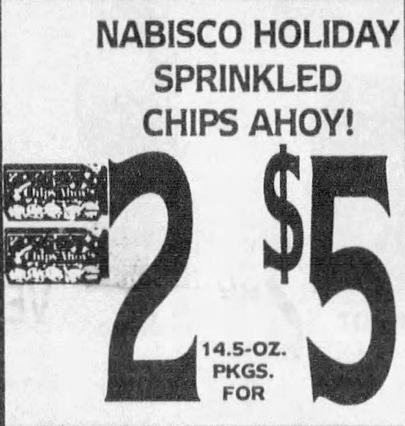 In 1992, they started selling a variation, the Holiday Sprinkled Chips Ahoy! The difference, of course, was with the sprinkles. They were changed to red, green, and white for the holiday.