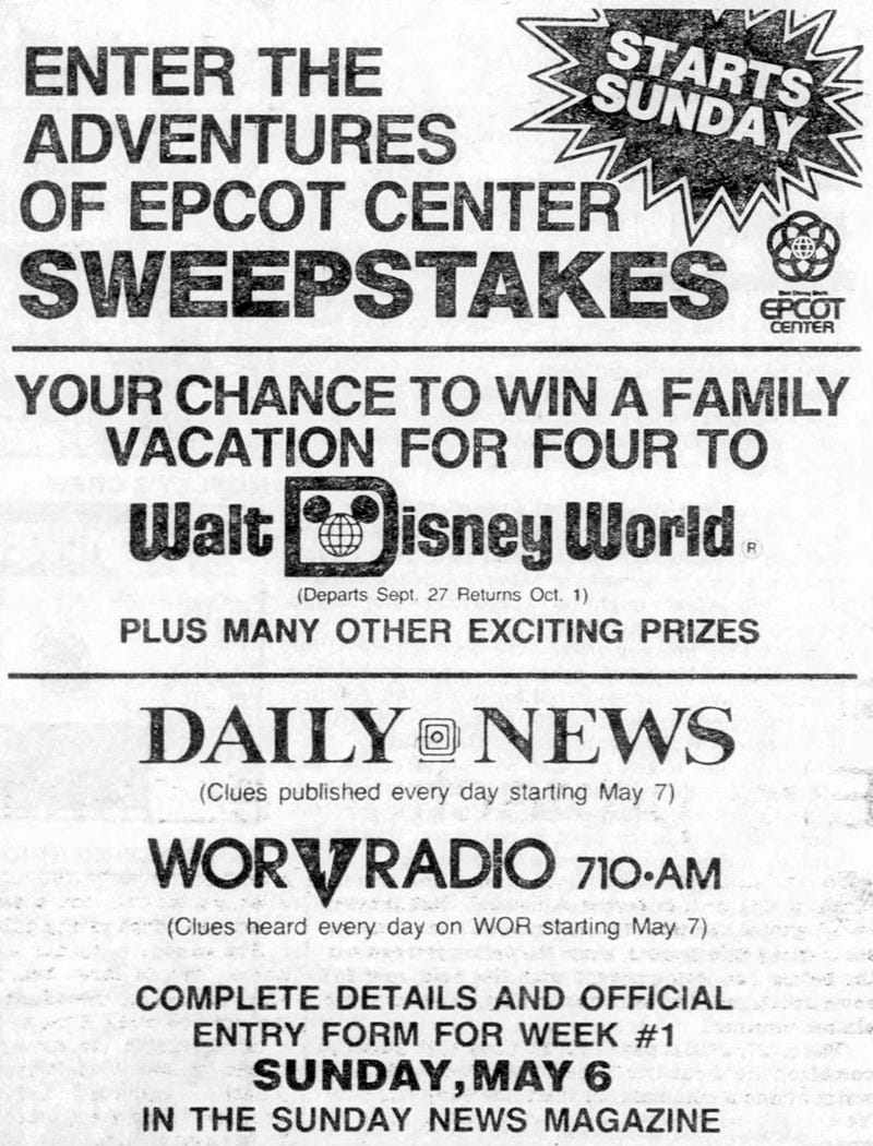 In 1984, newspapers and radio stations across the U.S. were giving away trips to EPCOT Center.