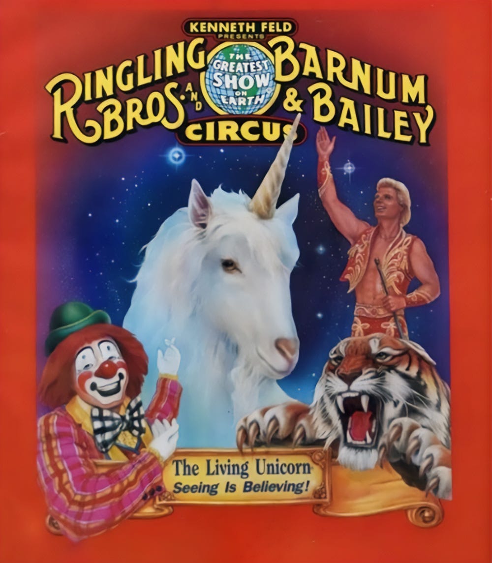 When Ringling Bros. and Barnum and Bailey Circus started hyping its newest attraction for the 1985 season, I was exactly the right age to fall for it completely. I was a kid in New Jersey, and the ads were everywhere. A beautiful white creature with a single horn rising from its forehead, standing in a spotlight like something that had wandered in from another century. “Seeing Is Believing,” the posters said. My mother took me. I believed.