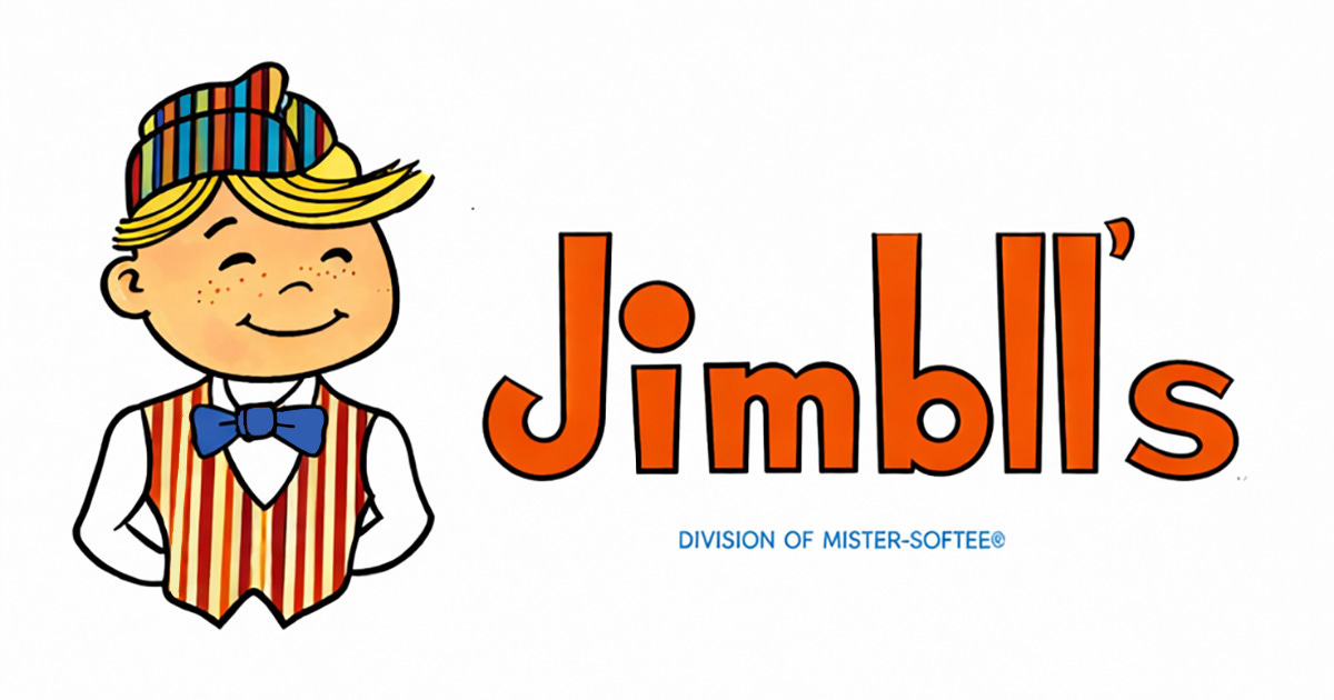 As the Jimbll’s brand developed, they introduced a mascot character (a cheerful figure in a striped vest and bow tie, styled like the Mister Softee mascot but distinct to the restaurant concept) that appeared prominently in their advertising by 1969.