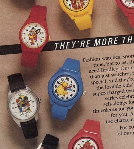 The watch is an interesting prize. Bradly would make a Nerd watch a few years later that is much more plastic-looking. The Nerd is also larger than the prize watch.