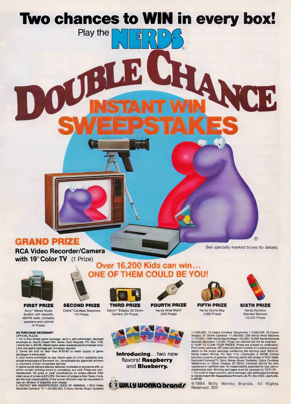 The eighties brought a wave of excitement with the introduction of Nerds to the market, and like many others, I too was swept up in the mania that followed. The allure of those colorful, tangy candies proved irresistible, and I probably bought a fair share of boxes during this thrilling contest period.