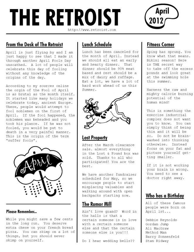 The Retroist Monthly Newsletter for April 2012