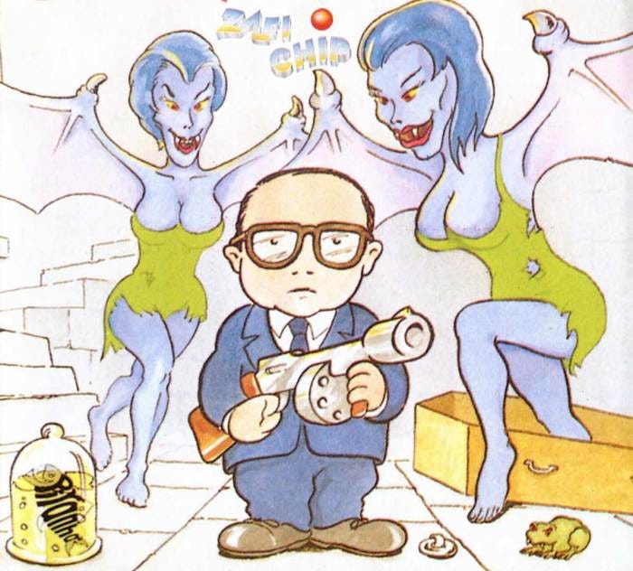 Let’s just take this cover for what it is, a cover to a cutesy, colorful Super Nintendo Action RPG (wait, a colorful Super Nintedo Action RPG, I need to try this game) so we really cannot fault the goofy design of our little bloodsucker. Actually, I like Spike’s design, jaunty top hat, stripped vest, what looks like Reebok Pumps for shoes, all things that work well. It’s not the small garlic Goomba that I question, it’s the strange, purple pants wearing, pale-skinned Easter Island head creature. What is that thing? I am sure if I played the game it would make sense, but for now, I want to squash its stupid little head. Or suck its blood out till it’s an empty husk of a being, one of the two.