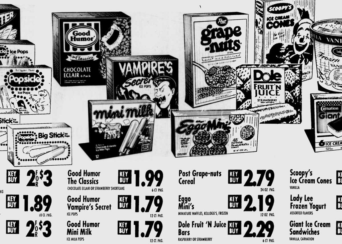 A box of Vampire’s Secret Ice Pops ranged in price from 99 cents on sale or with a coupon to a regular price of around $2.50. A box consisted of 12 pops. The standalone pops from ice cream trucks and stores were usually between 50 and 99 cents. They were also a good deal larger.