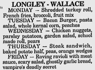 If you were lucky enough to go to a school that served Good Humor products, these might have been what was on the menu. I was able to find one lunch menu from Halloween week of 1992 in Lewiston, Maine where Vampire’s Deadly Secret was on the menu.