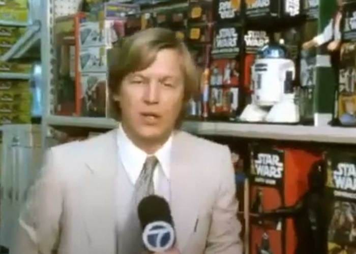 The footage starts with an interview with the Toys R Us store manager in front of an endcap filled with peg after peg of Star Wars figures. You just want to reach out and grab them by the armful. The gist of this interview and all that will follow is that the Star Wars toy phenomenon is not a fad. Instead, this is a real trend.