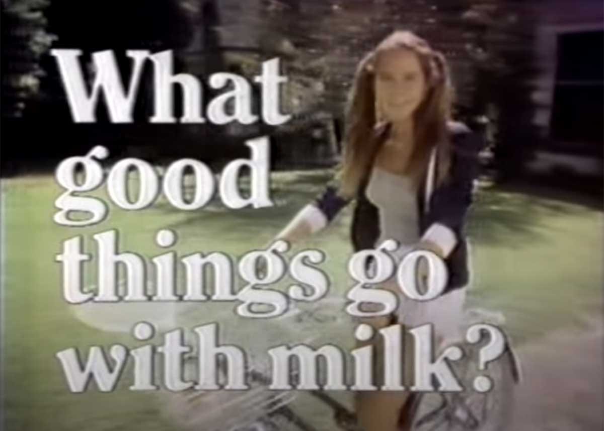 Now, let's talk about this ad from the late 1970s, brought to us by the California-Oregon-Washington Dairymen. They sure were determined to convince people that milk is the perfect beverage to accompany everything, and they didn't hold back in their pitch. Right from the start, the gal on the bike confidently picks hamburgers and hot dogs as the "of course" foods to enjoy with milk.